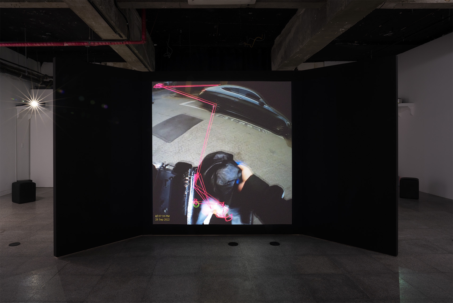 Collaborating with three delivery riders working for platforms, ‘Our Collective Eyes’ visualizes the riders’ eye movement (visual attention) recorded by wearable device for each single delivery taking place throughout the whole process from beginning to end and spatializes it in exhibition space. The constantly moving focal lines of the riders in mobility not only demonstrate movements synchronized with the conditions and modes of platform work which require them to accomplish the given delivery task within a limited time, but also invite us to discover the life activity of a living body itself that cannot be reduced to productivity in a narrow sense. The work organizes a collective performance of eyes that audience follows the attention of the platform delivery riders.